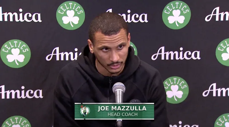 賽后,凱爾特人主教練喬-馬祖拉接受媒體采訪(fǎng),談到了比賽最后階段的那次挑戰。